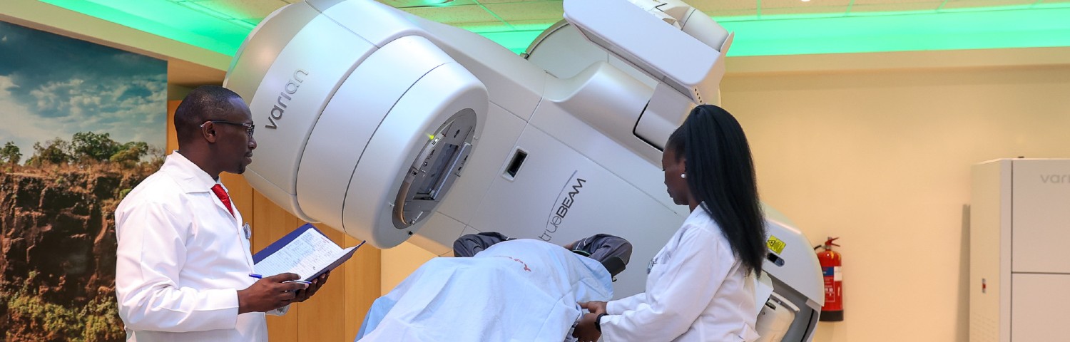 Hospital Radiation Therapy Technologists Simon Karure and Winnie Kwena